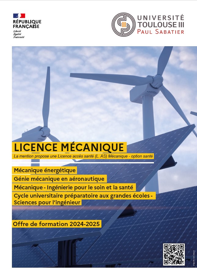 La licence mention Mécanique rentre dans le cadre de la licence flexible mise en place par l'Université Toulouse III Paul Sabatier à la rentrée 2022.